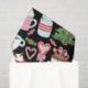 This cute tissue paper is versatile and can be used for giving gifts or art and craft projects. The design features Christmas trees, hot cocoa, candy canes, sweets and cakes on a black background.