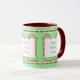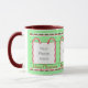 Add 3 special photos to this festive holiday mug with candy canes on a green background. Customizable text says "Merry Christmas" on 3 sides.
