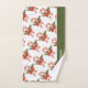 Personalized Christmas Candy Canes Bath Towel Set features candy canes with red bows and holly pattern on white background and custom personalization.