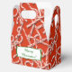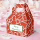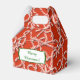This is a pretty box to hold that special gift! It features a repeated bright red and white candy cane pattern which covers the entire outside of the box. One side has a green lined white banner with your customized text in holiday green. Festive and colorful!