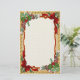 Fun Christmas stationery features two Christmas candy corners with ribbon candy and candy canes and rich red bows over gold mesh and other delicious accents. Center area is lightly texture white on white effect.