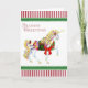 Christmas Card with candy stripes, green tinsel and a Christmas unicorn.
