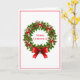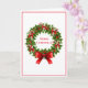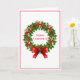Greeting card shown with a festive Christmas candy cane wreath print.