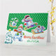 Lovable wintery scene with snowmen and snowgirl characters playing musical instruments in a Christmas band. Also check out the matching wintery characters with snowboarding and sledging snowgirls, skiing snowmen and skating snowmen. A lovely original illustrated card to warm your hearts when the snow starts falling.