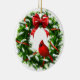 Christmas ornament is shown here with a festive wreath and cardinal print.