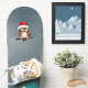 This charming design presents a detailed illustration of a brown and white owl perched on a branch. The owl wears a red Christmas cap with white snowflakes, adding to the festive spirit. His large, captivating eyes attract attention, while a small red gift with a white ribbon subtly lies at the base of the branch, suggesting the generous nature of the holiday season. This design captures the warmth and joy of Christmas by representing this iconic winter bird in a cozy and celebratory setting.