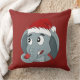 Pillow with an illustration of a cute elephant with red Santa cap; great decoration for Christmas holidays, , illustrated by Radka Kavalcova