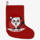 Christmas stocking with illustration of a head of cute panda bear with Santa's hat; great decoration for Christmas holidays, editable template design with custom field for your own text, illustrated by Radka Kavalcova