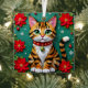 Cute Christmas cat themed ornament with a beautiful tabby cat with red poinsettias and a teal background. On the back you can add your own custom message.
