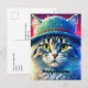 Christmas Cat in a Hat - editable name Holiday Postcard