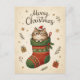 Christmas Cat in Stocking Postcard