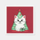 Cute white Christmas cat is posing with a Christmas tree and Christmas gift