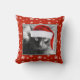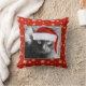 Christmas Cat on Red Pillow w/ Snowflakes; Fun Holiday Throw Pillow for any cat lover! Cute black cat with Santa Cap, on a matching red pillow scattered with snowflakes