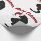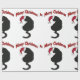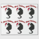 This wrapping paper is of a black cat wearing a Santa Claus hat and it says "Merry Christmas".