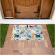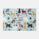 Cute White cat, black cat, tabby cat, Persian cat, Siamese cat and tuxedo cat dressed in festive holiday outfits, Santa hats and argyle sweaters with scattered Christmas ornaments pattern.