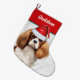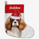 Christmas Cavalier Dog with Name Woof Background Large Christmas Stocking