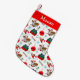 Perfect! Exactly what I ordered! I uploaded a picture of my blue chow, and the screen print was incredible. the back side of the stocking was the red and black checkered print. my puppy's name was also printed on the cuff of the stocking. PERFECT! Highly recommend this product! My puppy's name was screen printed onto the cuff of the stocking, the font was perfect!