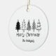 Lightweight, smooth, pure white ornament with nice sheen. Perfect size to be seen from across the room ... and to attract closer inspection! Price was great for ordering enough for the whole family! Clear, bold black design just as requested. Matches the order exactly. Just so nice!