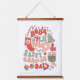 It's a holiday mash up with this cute Holly Jolly Vibes & Happy Challah Days funny custom modern Wall art. Funky colors of reds, pinks and greens with Christmas and Chanukah or Hanukkah icons, menorah, dreidel, christmas tree, stocking, lights, jewish star of David, and candy cane.
