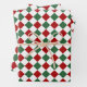 Christmas Checkerboard Pattern Red Green White Gift Wrapping Paper Sheet Set