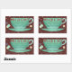 These cute holiday seasonal stickers show a vintage-looking teacup in teal with a tea bag swirling around it and lots of retro starbursts. The text says, "Have a Cup of Cheer," "tea to warm your heart & joy to warm your soul" as well as "this gift is sent with love." Add your family name at the bottom and use these whimsical stickers on your Christmas presents. All text can be easily personalized except the red text at the top.