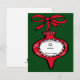 Invite your family and friends to your Christmas party with this red ornament with green background invitation card that says: Christmas cheer. Easily customize the card by adding the date, time, address, and phone number.