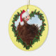* A little Christmas chicken, a Frizzle Chicken, wearing a cute Santa Hat in a heart shaped holiday wreath.