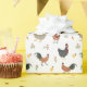 Pattern featuring illustrations of chickens and chicks with santa hats, scarves, Christmas ornaments, holly, and candy cane