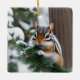 This Christmas ornament features two different images of an adorable chipmunk in a magical Forest.
