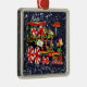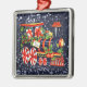 Pretty and Festive Silver Square Ornament Featuring Christmas Choo Choo Train Blue Faux Glitter Design