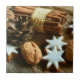 Design features a Christmas-themed photograph of cinnamon sticks and stars, as well as pine cones and walnuts in the shell.
