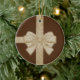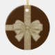 Christmas Circle Ornament, Beige Bow Ceramic Ornament