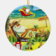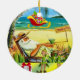 Christmas Circle Ornament, Summer Beach Santa Ceramic Ornament