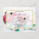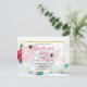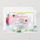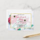 A christmas party invitation postcard with a warm comforting Christmas photo. A hot mug of cocoa with marshmallows, a striped candy cane, a green and white