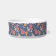 This cute Christmas holiday pet bowl features a purple background with pine leaves, pinecones, beanie hats with pom and cups of coffee. Personalize it for your needs. You can find matching products at my store.