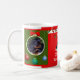 Christmas red and green, toys, holly, a Teddy Bear and English Toy Spaniels on a coffee mug that says Merry Christmas.