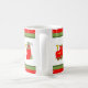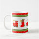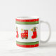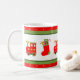 Creative Christmas holiday mug featuring toy train and Christmas stocking. To personalize add name.