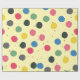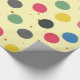 Cute Christmas colorful circles and gold polka dots on light yellow background. Customizable wrapping paper template