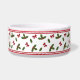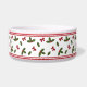 Destei's original festive pattern of green and red Christmas Holly / Common Holly plants together with red bows. The design is framed by red color borders on the top and bottom. There is also a personalizable text area for a name or other custom text. This festive design featuring a classic red and green Christmas color scheme is ideal for the Holiday season or for pets named "Holly", for example.