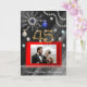 A custom photo on a stylish red silk embellished with double strand of White Pearls and elegant black ombre and lines pattern background brings the final touch to the 45th Wedding Anniversary card.