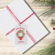 These festive favor tags feature a watercolor wreath decorated with Christmas cookies and stylish script typography.