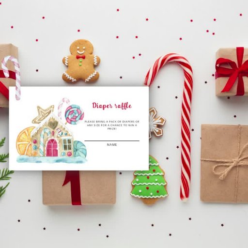 Watercolor gingerbread house. Invitation baby shower Christmas party. Decorate the gingerbread house with Christmas candies, candy cane, orange slice and gingerbread cookies.