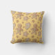 This fun Holiday throw pillow has a pattern of gingerbread Christmas cookie images, including a cute gingerbread man, stars, and tree bulbs. The brown cookie images are placed on a pale gold background. The same pattern is on both sides of the pillow.