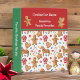 Holiday recipe binder with a festive Christmas cookie and candy pattern on white with red and green contrasts. Changeable text on front and back for you to edit with your own details in the "Personalize" text editor. Coordinates with a kitchen towel, baking apron and other designs in the Christmas Kitchen collection at Pinkladybugs on Zazzle.