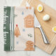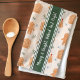 Ring in the holiday season with this customizable kitchen tea towel that features a charming Christmas cookie pattern accented with sprigs of holly and stars. Simple vintage-style French stripes with customizable text that says, “Merry and Bright and Baked Just Right,” add a touch of charm, making this design a perfect addition to your holiday decor. Personalize the towel with your own text, holiday saying, or name to add festive cheer to any kitchen or create a unique gift for people who love to bake, entertain, or add a personal touch to their holiday celebrations.