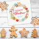 This cute Christmas cookies wreath surrounds text reading "Merry Christmas". Add the year for a personalized napkin for cookie decorating contests, cookie exchange parties, holiday baking themed gift baskets, or a treat for your own dining table!