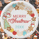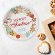 This cute Christmas cookies wreath surrounds text reading "Merry Christmas". Add the year for a personalized plate for baked goods, gift basket gifts, or homemade crafts!