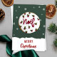 Modern Christmas cookies packaging design, great for individual cookies. This festive sugar cookie display card features a pine green background with subtle snowflake design, the bottom of the card includes a Merry Christmas message in trendy fonts in red. Stand out and make fun winter cookies packaging for your bakery.