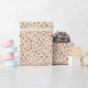 Whimsical Christmas pattern wrapping paper featuring illustration of holiday cookies.