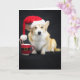 Christmas Corgi in Cap with Cup and Candy Cane Card